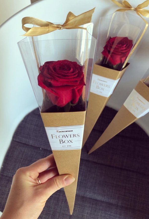 Żywa róża w rożku, elegancka delikatna i oryginalna 😍 🌹 Świetnie sprawdza się jako dodatek do prezentu, jako symboliczny kwiat lub prezent ślubny